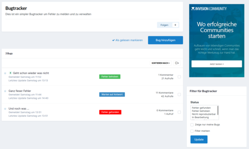 Unser Bugtracker ist ein schlichtes, aber effizientes Tool zur Fehlerverwaltung.