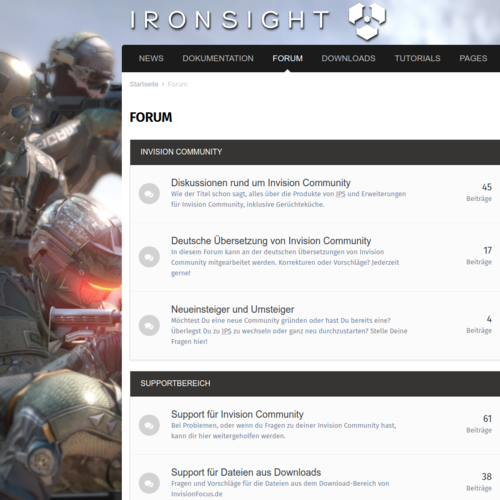 IRONSIGHT ist ein helles Theme für Invision Community 4.5 in den Farbtönen Weiss / Grau und einem schicken Layout. Es ist gratis und enthält keine sichtbaren Copyrights.