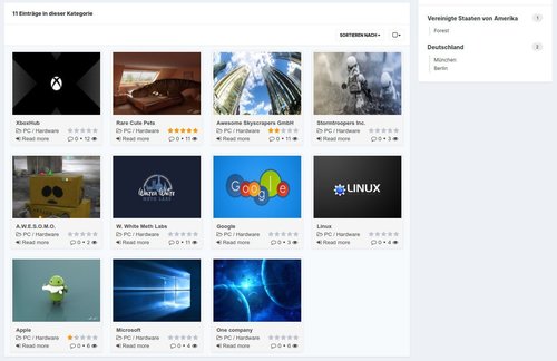 Mit dieser Datenbank können Sie und Ihre Benutzer unbegrenzt viele Kategorien für alle Arten von Unternehmen erstellen, ob lokal oder international. Das Setup ist für alle wichtigen Unternehmensinformationen vorbereitet, einschließlich Unterstützung für Google Maps und Mapbox. Zusätzliche Felder können leicht von Ihnen selbst hinzugefügt werden.