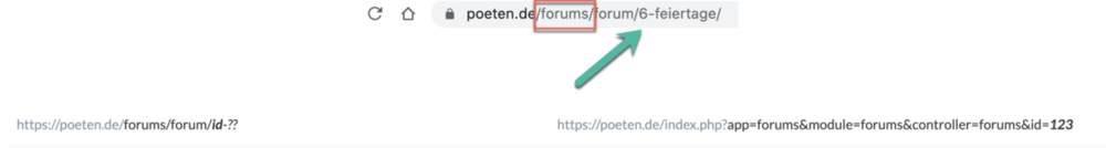 So kann ich z.B. https://poeten.de/forums/forum/6-feiertage die rot markierten Bereiche in der URL nicht entfernen.